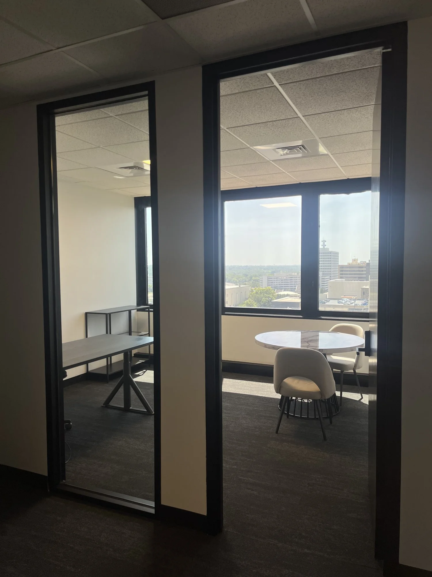 We have private offices ranging from 1-person rooms to 10-person suites, with the ability to rent out multiple offices to one company, making them as large as needed.